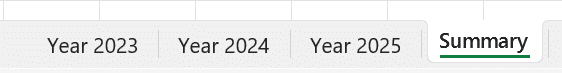 Here are the worksheets we’ve come up with over the past three years; we’ve named them Year 2023, Year 2024, and Year 2025, respectively.