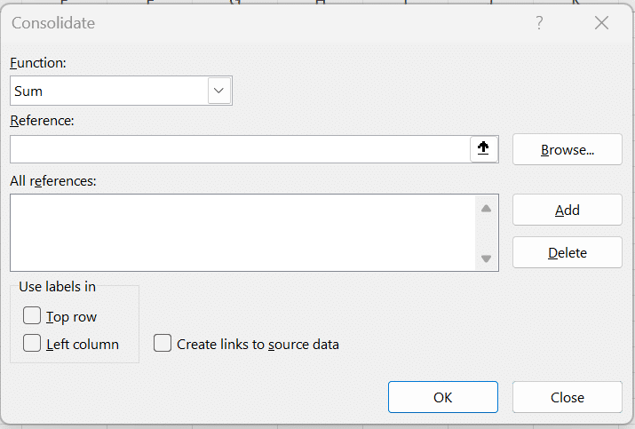 A handy function for FP&A analysts, it has been around for over two decades. Its main function is simple: combining information from several worksheets or workbooks and displaying it in a neat summary. Located under the “Data” tab