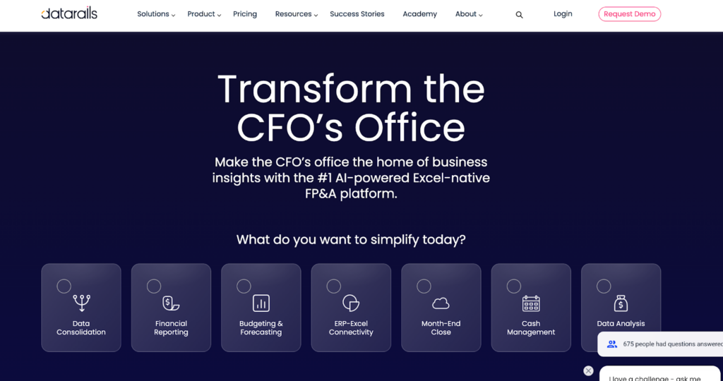 Datarails automates forecasting, variance analysis, and consolidation, fully integrated with Excel. It also includes an AI-powered chat that answers finance questions using real data.