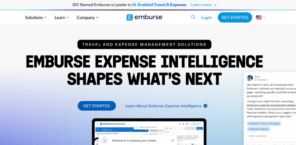 Emburse is another AI-enabled travel and expense tool. It embeds AI in its expense tools to auto-fill entries and flag suspicious activity. The platform supports OCR, policy checks, and audit readiness.