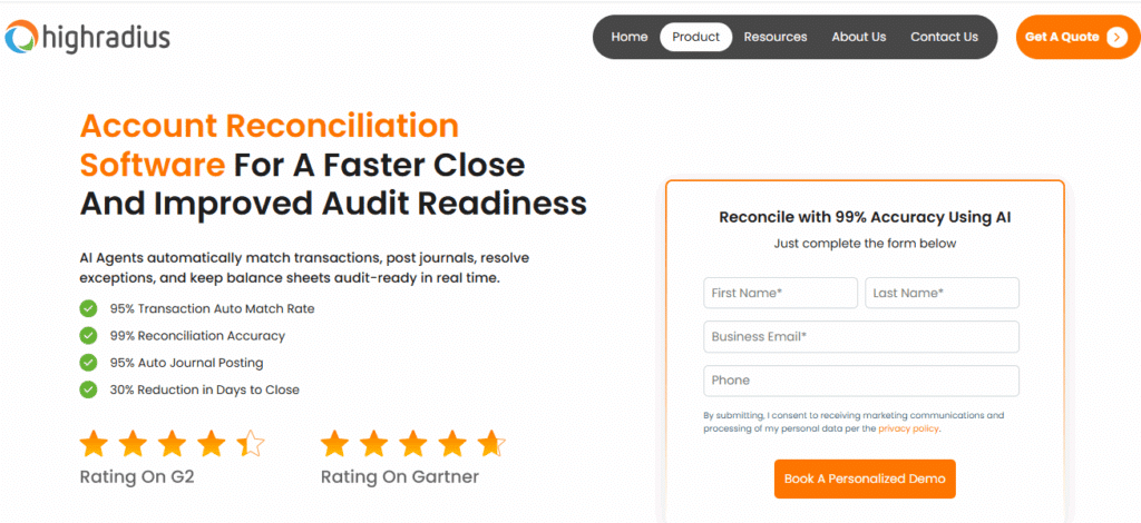 HighRadius brings AI and machine learning to the heart of financial operations. It automatically matches transactions, posts journal entries, detects exceptions and keeps balance sheets audit-ready in real time.
