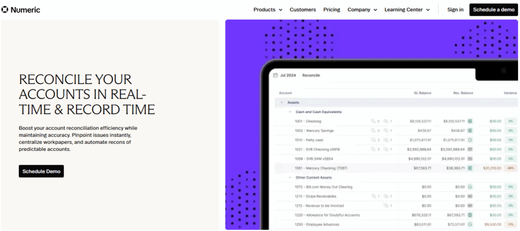 | Numeric | Real-time reconciliations | Major ERP systems | SOX compliance and audit trail documentation | Custom pricing |