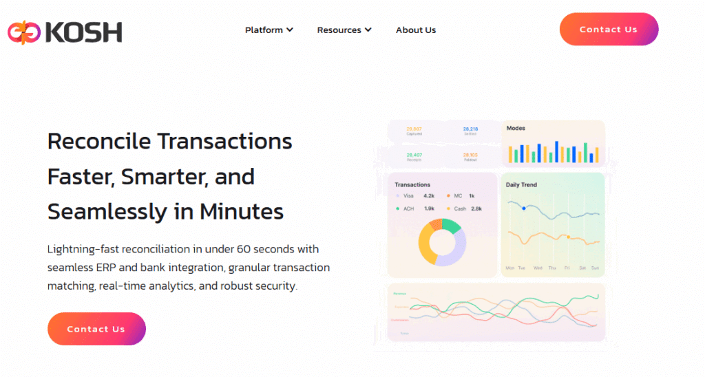 Kosh.ai is advanced software for reconciliation that simplifies financial data management. It enables businesses to reconcile transactions in under 60 seconds through seamless ERP and bank integrations, granular transaction matching and real-time analytics.