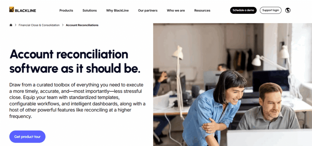 - BlackLine: Best enterprise-grade platform for organizations that manage complex reconciliations across multiple entities or geographies. AI-assisted workflows make it a go-to choice for companies prioritizing scalability.