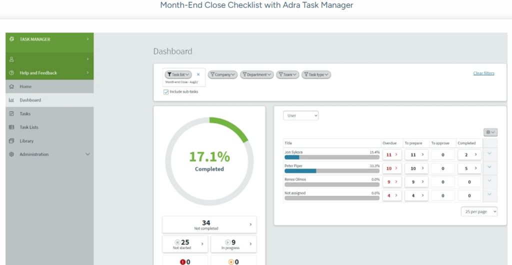 - Strong checklist and task management for close visibility
