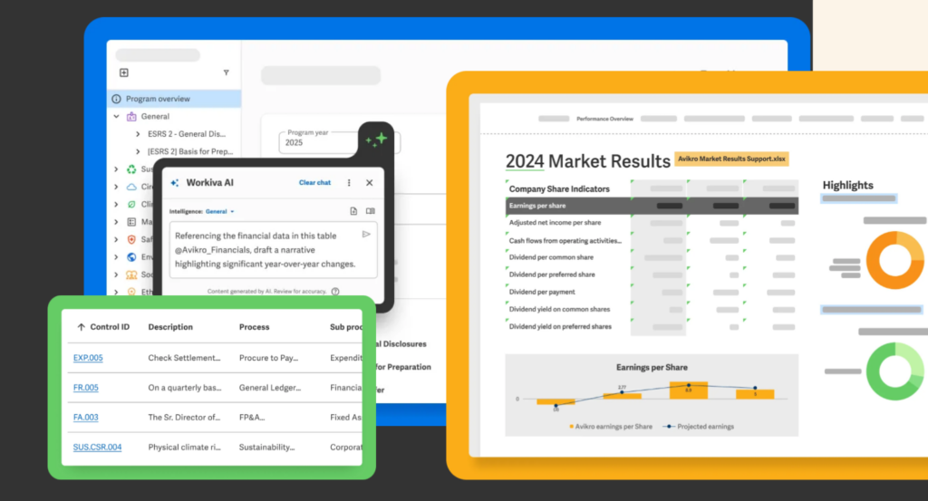 Workiva is a governance-first platform that integrates financial close management with regulatory reporting and compliance. Its standout feature is data linking, which allows users to connect spreadsheet data directly into financial statements, footnotes, and disclosures, with changes flowing automatically across connected documents. This makes it popular with public companies managing SEC filings alongside the close.