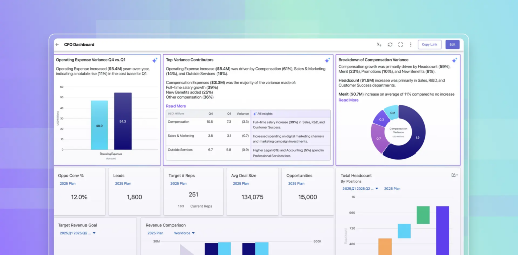 - Combines planning, budgeting, forecasting, and close in one platform