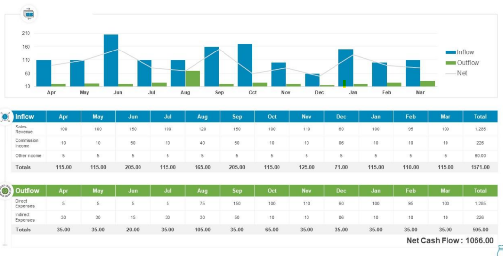 - Net Cash Change: Net Cash = Total Cash Inflows – Total Cash Outflows