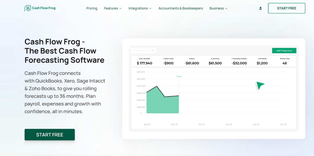 Cash Flow Frog is an app that offers a user-friendly way to model cash flow scenarios and visualize how different outcomes affect your cash runway. Its rolling cashflow forecasts give you 36-month visibility.