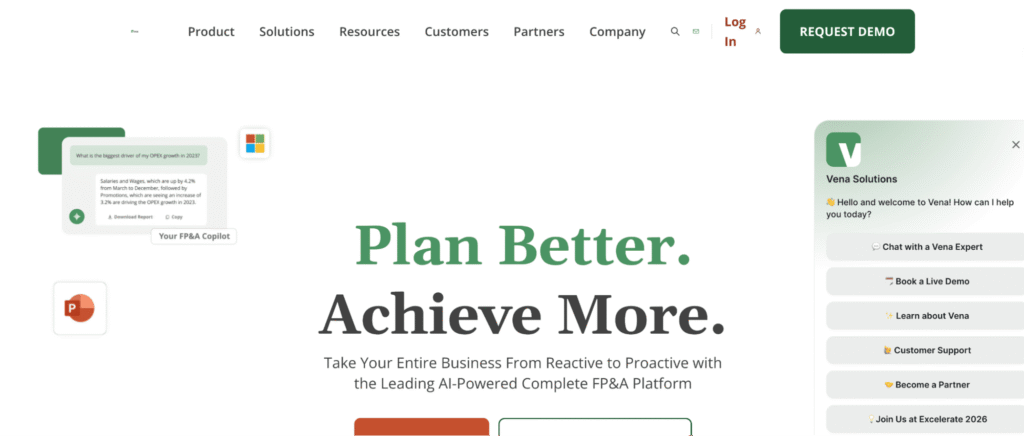 Vena adds a centralized database and workflow engine behind Excel models to enhance budgeting, forecasting, and cash flow analysis. Some companies have reported 66% faster planning cycles with its help.