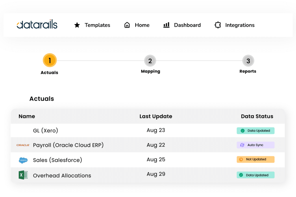 Datarails unifies financial data from multiple sources without IT or manual reconciliation. You can connect NetSuite, Excel, and dozens of other systems (like Salesforce, QuickBooks, and Workday) into a single, dynamic data model.